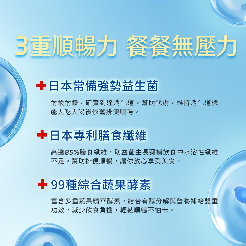 1. 成份:海水濃縮物、非洲芒果種子萃取物、綜合蔬果發酵粉(決明子萃取物、糊精、昆布、裙帶菜、紫菜、香菇、檸檬馬鞭草、苦艾、西番蓮、金盞草、大飛揚草、牛筋草、檸檬草、大茴香、馬黛茶、魚腥草、紫蘇、薰衣草、貓薄荷、洋甘菊、生薑、益母草、番石榴葉、丁香、咸豐草、迷迭香、燕麥片、玉米、大麥、豌豆、紅豆、薏苡仁、芝麻、刺槐豆、小米、大豆、爆裂玉米、黑麥、黑豆、鷹嘴豆、扁豆、糙米、鳳梨、香蕉、蘋果、木瓜、番石榴、甜瓜、酪梨、梅子、西印度櫻桃、檸檬、葡萄乾、芒果、楊桃、西瓜、腰果、核桃、奇異果、梨子、巴西莓、卡姆果、萊姆、玫瑰果、橘子、樹莓、柳橙、水蜜桃、紅蘿蔔、甘藍、蓮藕、牛蒡、菊苣、地瓜、南瓜、木薯、番茄、羽衣甘藍、青椒、紅甜菜、胡蘿蔔、長型南瓜)、酪酸菌(麥芽糊精、酪酸菌)、玉米來源可溶性纖維、二氧化矽、硬脂酸鎂、滑石粉、綜合消化酵素(澱粉酵素、葡萄糖澱粉酵素、植物酵素(含脂肪分解酵素、蛋白質分解酵素、澱粉酵素)、植酸酵素、果膠酵素、脂肪分解酵素、蛋白質酵素、轉化酵素、蛋白分解酵素4.5、鳳梨酵素、β-葡聚醣酵素、纖維分解酵素、蛋白分解酵素3.0、半纖維素分解酵素、木聚醣酵素、乳糖酵素、木瓜酵素、胜肽酵素、蛋白分解酵素6.0、澱粉糖化酵素、麥芽糊精)、複合式柑橘及瓜拿納萃取物(複合式柑橘(葡萄柚萃取物、甜橙萃取物、血橙萃取物)、麥芽糊精、瓜拿納萃取物)、魔芋萃取物、毛喉鞘蕊花萃取物(毛喉鞘蕊花萃取物、麥芽糊精)