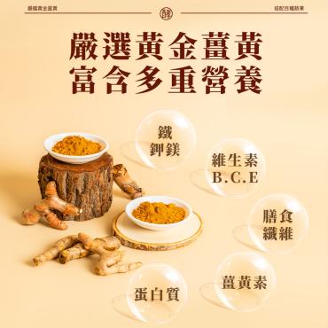 內容物:薑黃萃取液、液態發酵靈芝菌絲體(ganoderma lucidum(Leyss:Fr.)Karst)、黃精、紅藻、珊瑚草、高麗菜、空心菜、長年菜、小白菜、花椰菜、芥藍菜、紅鳳菜、青江菜、皇宮菜、青花菜、蕃薯葉、白蘿蔔、紅蘿蔔、馬鈴薯、苜蓿芽、綠豆芽、紅豆芽、黑豆芽、黃豆芽、花生芽、豌豆苗、大黃瓜、小黃瓜、西洋芹、竹筍、蕃薯、薑、甜椒、青椒、山蘇、茄子、A菜、莧菜、毛豆、芹菜、菠菜、白菜、油菜、茼蒿、冬瓜、南瓜、胡瓜、苦瓜、絲瓜、蘆筍、玉米、牛蒡、萵苣、昆布、川七、紫菜、海帶、木耳、美濃瓜、葡萄柚、哈密瓜、奇異果、火龍果、百香果、檸檬、梨子、鳳梨、木瓜、龍眼、荔枝、香蕉、洋香瓜、蘋果、草莓、西瓜、蕃茄、梅子、桑葚、李子、酪梨、椰子、芭樂、甘蔗、柳丁、橘子、甜桃、葡萄、當歸、百合、黃耆、人參根、山藥、枸杞、茵陳、仙楂、紅棗、黑棗、甘草、茯苓、秀珍菇、金針菇、珊瑚菇、杏鮑菇、美白菇、猴頭菇、洋菇、香菇、糖