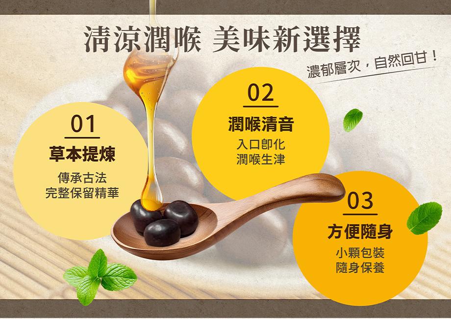 成分:砂糖、麥芽糖、椰子油、阿拉伯膠、梅子、植物萃取物(陳皮、羅漢果、膨大海、佛手)、金桔汁、薄荷、香料、食用色素(焦糖色素)、蜂膠、棕櫚臘。