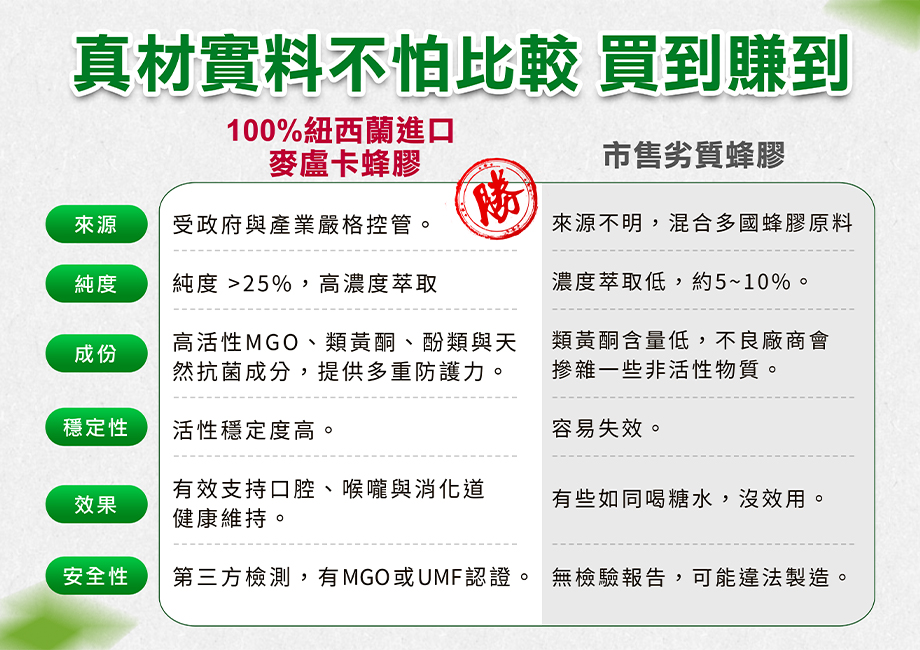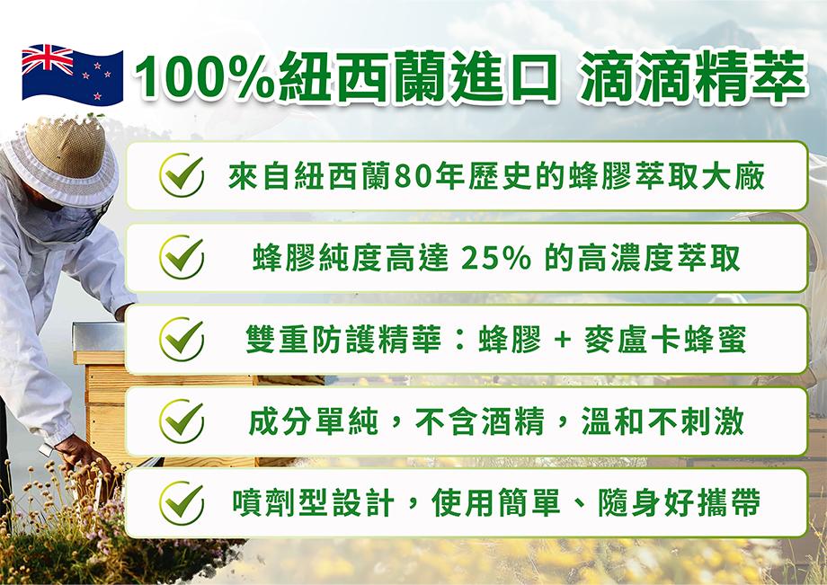 成分:純水、丙二醇、UMF 15+麥盧卡蜂蜜、紐西蘭蜂膠 萃取物(丙二醇、紐西蘭蜂膠) 、薄荷油、大豆卵磷脂、檸檬油、丁香油。