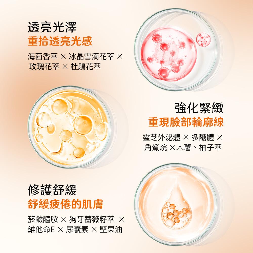 成分:Aqua、Cyclopentasiloxane、Tristearin、Glycerin、Mineral Oil、Phenyl Trimethicone、Sodium Chlorde、Cetyl PEG/PPG-10/1 Dimethicone、Squalane、Propanediol、PEG/PPG-18/18 Dimethicone、Niacinamide、1, 2-Hexanediol、Butylene Glycol、Tapioca Starch、Allantoin、Argania Spinosa Kernel Oil、Rosa Canina Seed Extract、Tocopheryl Acetate、Caprylhydroxamic acid、PEG-40 Hydrogenated Castor Oil、Phenoxyethanol、Fragrance、Hydrolyzed Placental Extract、Honey、 Pentylene Glycol、Sodium Hyaluronate Crosspolymer、Sodium Hyaluronate、Sodium Benzoate、Ethylhexylglycerin、Potassium Sorbate、Ganoderma Lucidum (Mushroom) Vesicles、Acmella Oleracea Extract、Crithmum Maritimum Callus Culture Filtrate、Sodium Lauroyl Lactylate、Isomah Disodium EDTA、Bee Venom、Leucojum Aestivum Bull Extract、Ceramide NP、Citrus Junos Fruit Extract、Ceramide AP、Cholesterol、Phytosphin-gosine、Xanthan Gum、Carbomer、Lecithin、Rhododendron Ferrugineum Lead Cell Culture Extract、Ceramide EOP