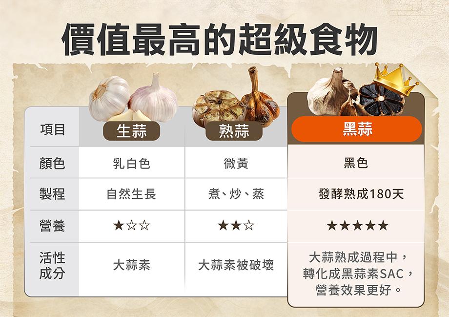 內容物名稱(成分):黑蒜萃取液、液態發酵靈芝菌絲體(ganoderma Iucidum(Leyss:Fr.)Karst)、黃精、紅藻、珊瑚草、高麗菜、空心菜、長年菜、小白菜、花椰菜、芥藍菜、紅鳳菜、青江菜、皇宮菜、青花菜、蕃薯葉、白蘿蔔、紅蘿蔔、馬鈴薯、苜蓿芽、綠豆芽、紅豆芽、黑豆芽、黃豆芽、花生芽、豌豆苗、大黃瓜、小黃瓜、西洋芹、竹筍、蕃薯、薑、甜椒、青椒、山蘇、茄子、A菜、莧菜、毛豆、芹菜、菠菜、白菜、油菜、茼蒿、冬瓜、南瓜、胡瓜、苦瓜、絲瓜、蘆筍、玉米、牛蒡、萵苣、昆布、川七、紫菜、海帶、木耳、美濃瓜、葡萄柚、哈密瓜、奇異果、火龍果、百香果、檸檬、梨子、鳳梨、木瓜、龍眼、荔枝、香蕉、洋香瓜、蘋果、草莓、西瓜、蕃茄、梅子、桑葚、李子、酪梨、椰子、芭樂、甘蔗、柳丁、橘子、甜桃、葡萄、當歸、百合、黃耆、人參根、山藥、枸杞、茵陳、仙楂、紅棗、黑棗、甘草、茯苓、秀珍菇、金針菇、珊瑚菇、杏鮑菇、美白菇、猴頭菇、洋菇、香菇、糖。