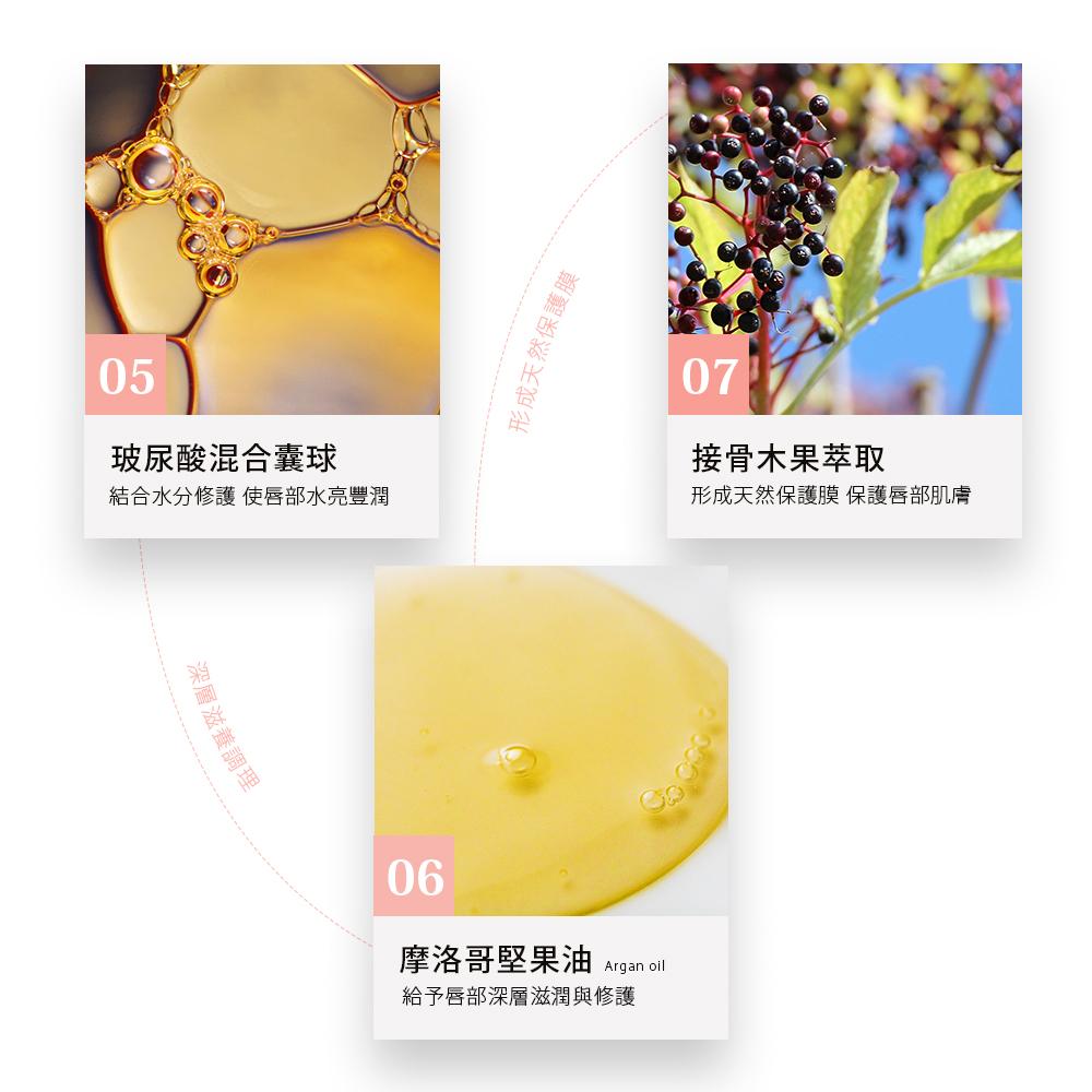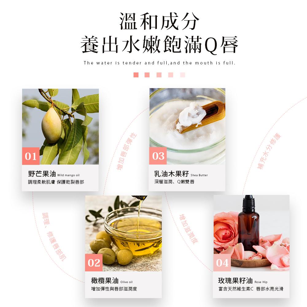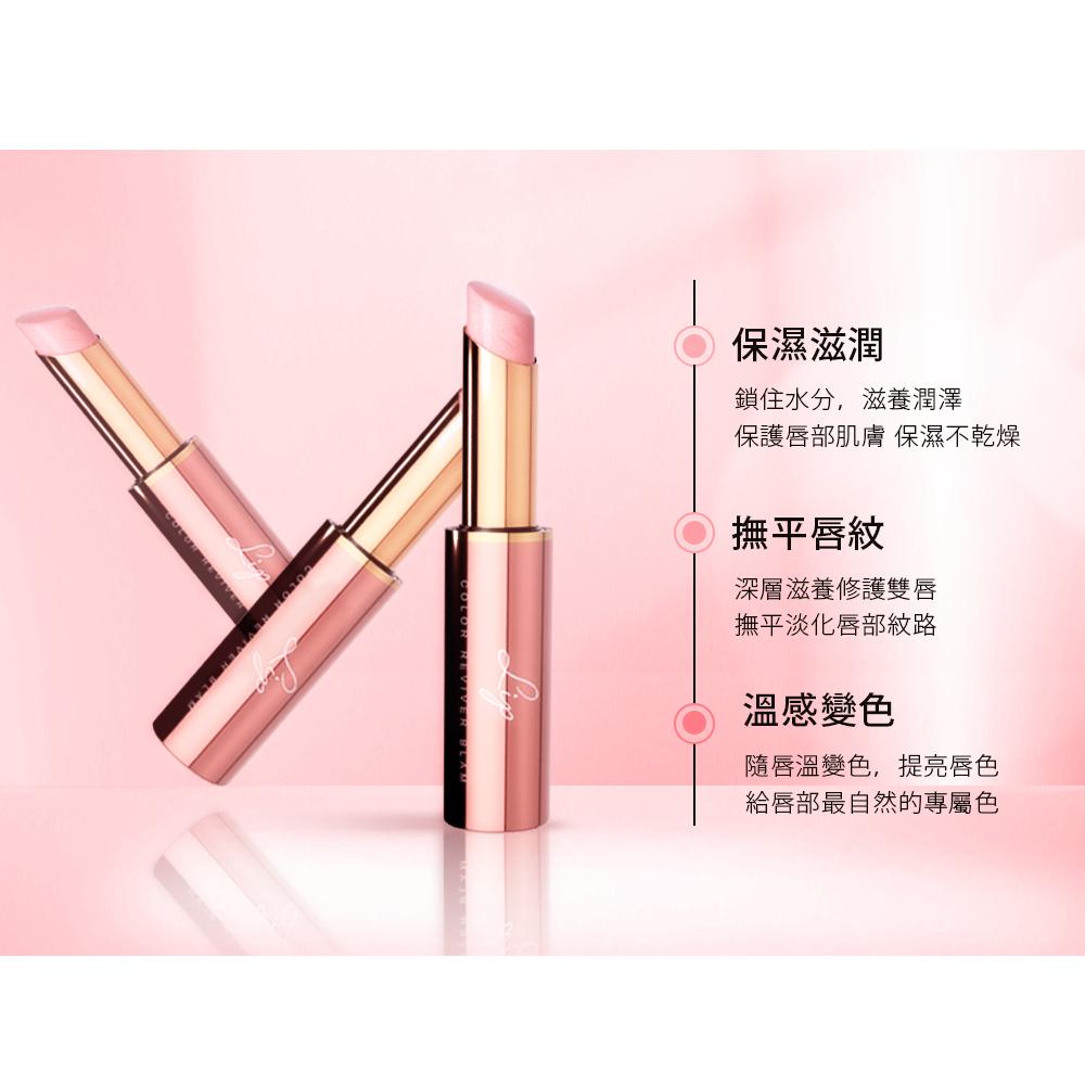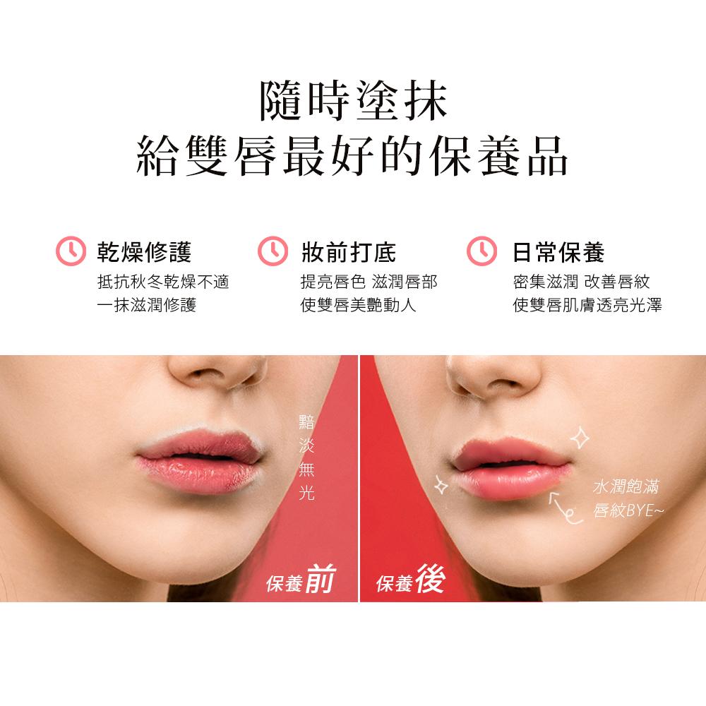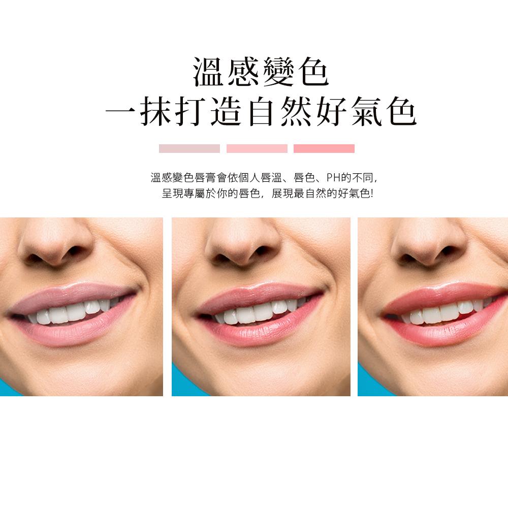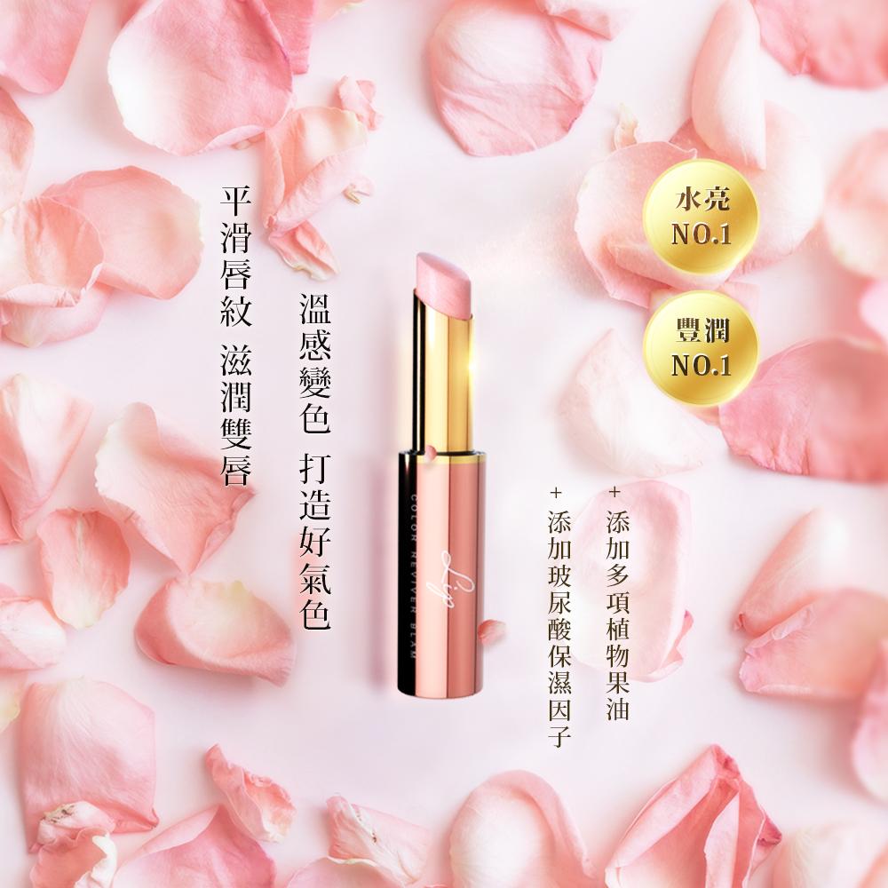 水漾潤色護唇膏擁有溫感變色 技術,高光澤水亮感、滑順不 黏膩質地,注入「玻尿酸」和 玫瑰果籽油及維他命E等。達 到極佳保濕力並深度滋養唇部 肌膚,使雙唇呈現透亮光澤, 綻放玫瑰般自然粉嫩色澤。
