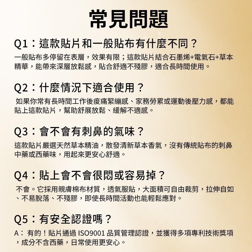 用法用量:貼片上之離型紙輕輕除去,貼於需要部位,可自行剪裁,建議4~6小時請立即撕掉,若洗澡後貼用,更能增加舒爽。