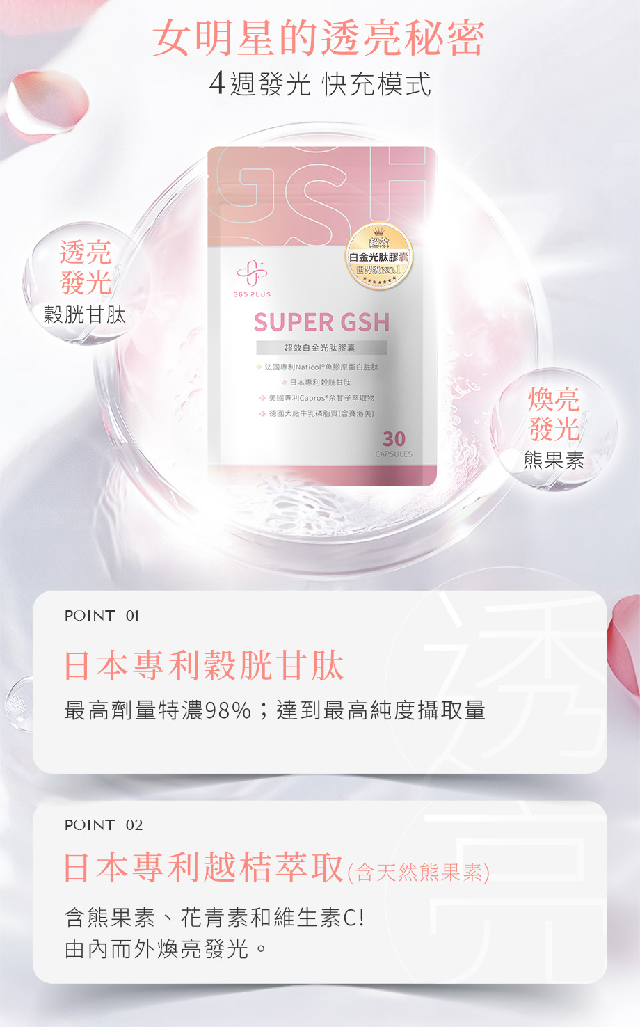 品名:SUPER GSH|超效白金光肽膠囊(煥白穀胱甘肽複方膠囊)