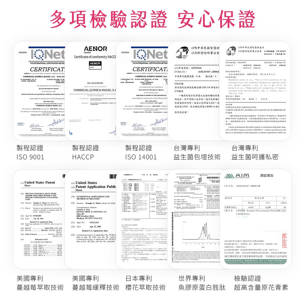 1. 成分:膠原蛋白、洛神花萃取物(洛神花萃取物、麥芽糊精)、蔓越莓萃取物(蔓越莓萃取物、麥芽糊精)、流行鏈球菌發酵物、卡姆果萃取物(卡姆果萃取物、麥芽糊精)、綜合乳酸菌(綜合乳酸菌、麥芽糊精、微結晶狀α-纖維素)、蔓越莓濃縮粉(蔓越莓濃縮汁、蔓越莓纖維、蔓越莓籽油、關華豆膠、卵磷脂(葵花來源))、二氧化矽、硬脂酸鎂、櫻花萃取物(麥芽糊精、櫻花萃取物、抗壞血酸(抗氧化劑)、DL-蘋果酸)
